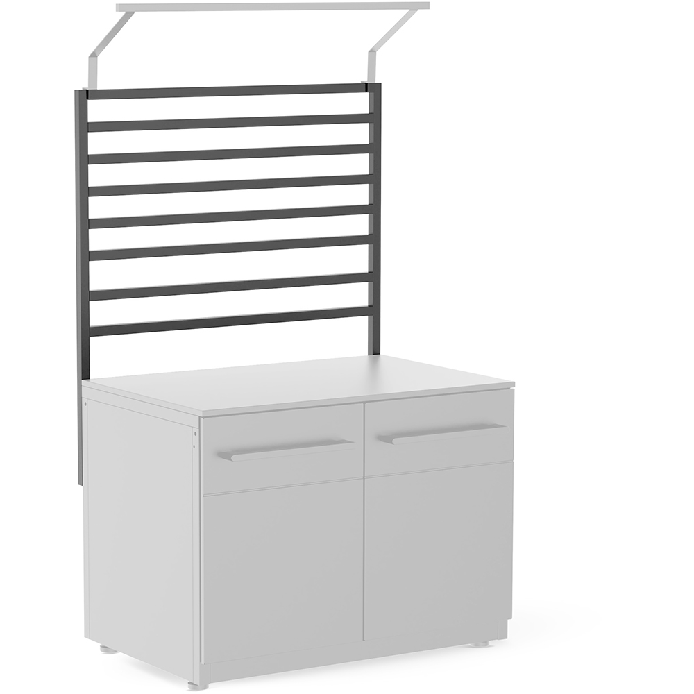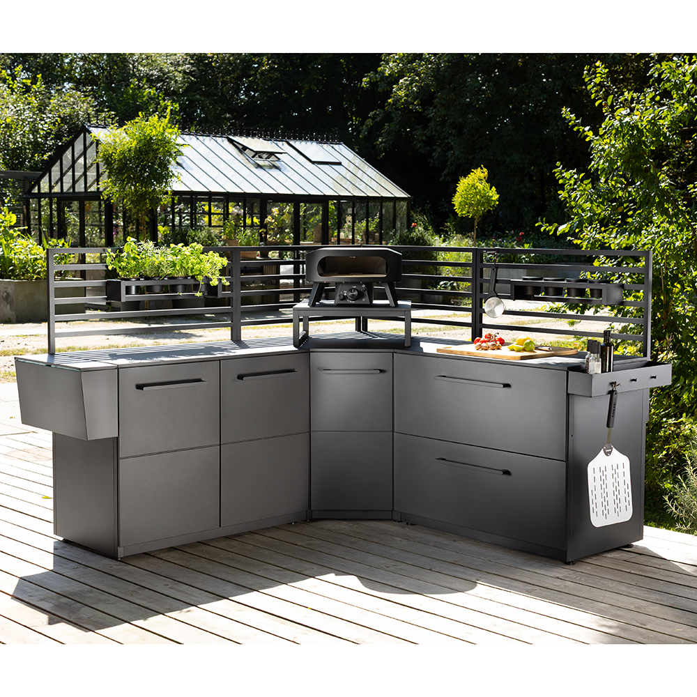 Die Cozze Elements Rückwand schafft Ordnung und Übersicht in Ihrer Outdoor-Küche. Utensilien und Zubehör lassen sich griffbereit platzieren, während das schlanke Design kaum Platz einnimmt. Gefertigt aus pulverbeschichtetem Aluminium in elegantem Mattschwarz ist sie robust, wetterfest und stilvoll zugleich.