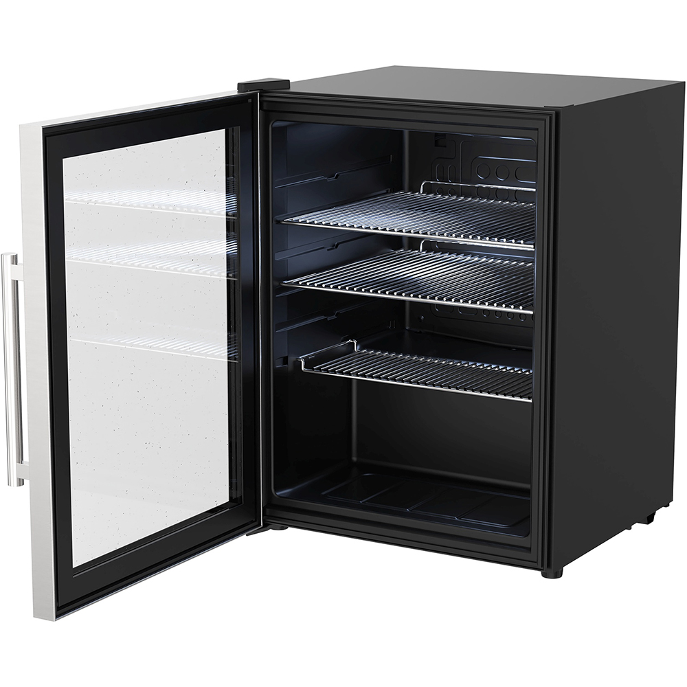 DescriptionFeatures Description Technische Details: Fassungsvermögen: 60 Liter Masse: B47 x H63,8 x T49cm Geräuschpegel: 46 dB Für den Ausseneinsatz geeignet (abgedeckt) Steckdose IP 44 Kühlschrank IP 11 3 Drahtregale, verchromt Umkehrbare Tür für bequemen Zugang Edelstahlrahmen mit Glasfront Stahlgriff Türscharniere: verzinkter lackierter Stahl Kühlsystem: Kompressor Features Energieeffizienzklasse G Garantieart Bring-in-Garantie (RHYNER) Garantiedauer 2 Jahre Hersteller-Garantie Garantie-Hinweis Transportkosten im Garantiefall zu Lasten des Kunden