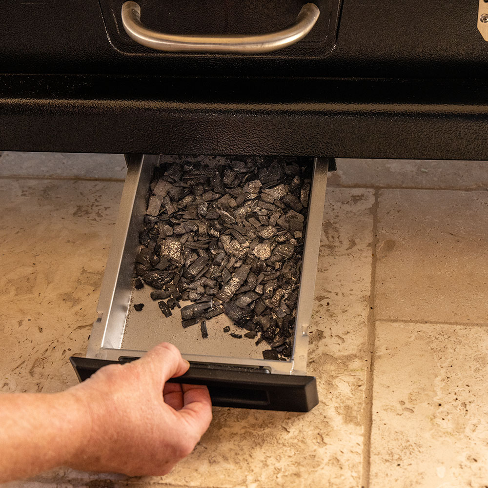 • Höhenverstellbarer Holzkohlebereich für direkte und indirekte Hitze