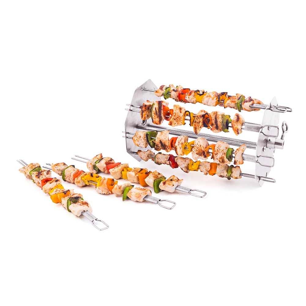 ermöglicht einen optimalen Halt beim Drehen und Abstreifen von Fleisch und Gemüse. Da das Spiessgestell und die Spiesse aus hochwertigem Edelstahl gefertigt ist, kannst du
