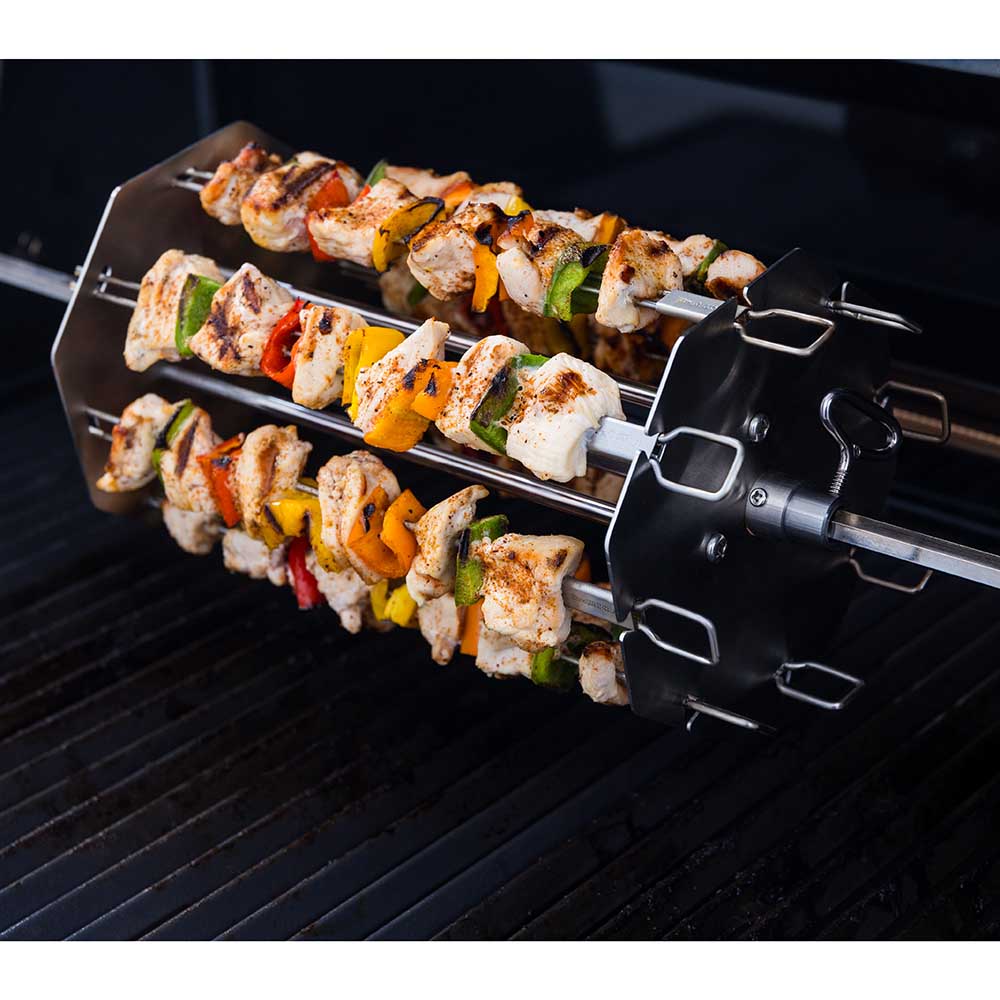 gewissen Abstand zum Grillrost, so kannst du deine Spiesse schonend garen und ohne angebrannte Stellen servieren. Der Doppelspiess verhindert, dass sich das Grillgut während des Grillens dreht. Der geformter Griff