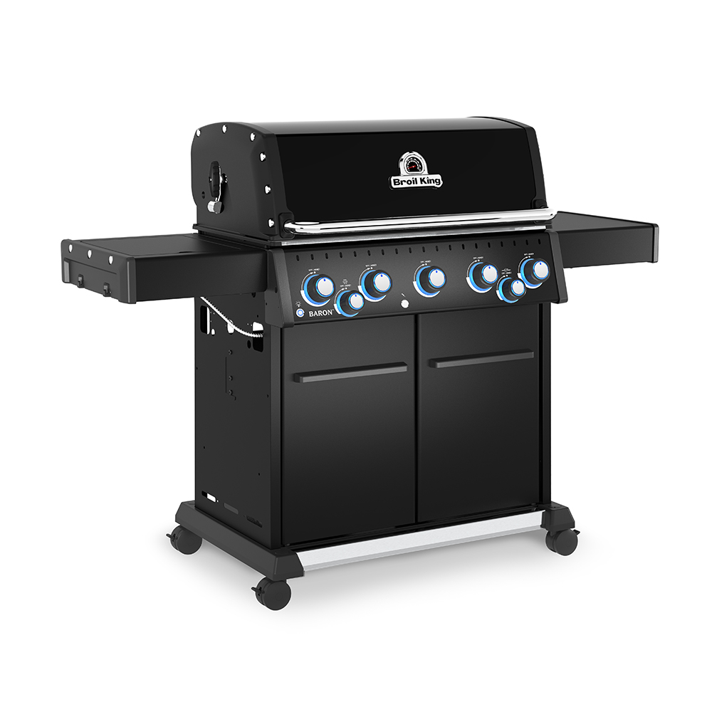 Der neue Baron 590 Shadow zeichnet sich durch sein Design mit der Black Knight Beschichtung, eine optimiere Gestaltung der Bedienelemente und die abklappbaren Seitentische aus. Jeder Broil King Gasgrill wurde hergestellt, um eine unglaubliche Grillvielfalt zu bieten. Es ist ganz egal für welches Modell du dich entscheidest, das legendäre Broil King Grillsystem gibt dir die Möglichkeit nahezu alles in jeglichem Stil zuzubereiten. Du kannst das perfekte Steak scharf anbraten, Geflügel oder einen leckeren Braten am Drehspiess garen oder Desserts wie Apfelkuchen oder Kaiserschmarrn zubereiten. Die 5 Hochleistungsbrenner sorgen für maximale Hitze und ermöglichen zahlreiche Zubereitungsmöglichkeiten. Die Seitenkochstelle ist ein praktischer Zusatz-Brenner, mit dem du neben dem Grillen direkt am Gerät kochen kannst – praktisch für Beilagen, Saucen oder alles, was Wärme braucht, ohne den Grillrost zu verwenden. Die einzigartig geformten Flav-R-Waves haben die perfekte Form, das herabtropfende Fett und Bratensäfte aufzufangen und zu verdampfen. So verleiht die dem Grillgut ein unwiderstehliches Raucharoma. Die nicht verdampften Bratensäfte werden weg von den Brennern in das Fettauffangsystem geleitet.