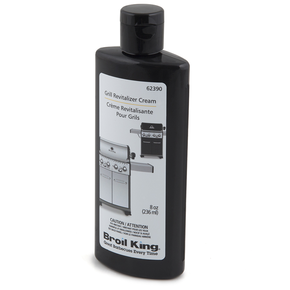 Der Broil King Grill Revitalizer entfernt problemlos auch die grössten Verunreinigungen und Verkrustungen auf allen äusseren Teilen, die aus Edelstahl oder Porzellan bestehen. Nicht geeignet ist der Revitalizer für lackierte Teile und solche aus Aluminiumguss oder Gusseisen. Der Grillreiniger wird auf die äusseren Edelstahlteilen aufgetragen, kurz eingerieben und danach einfach wegpoliert. Bei stärkeren Verschmutzungen lasse den Revitalizer einfach einige Minuten lang vor dem Polieren einwirken. Der Reinger darf nur auf äusseren Grillflächen aus Edelstahl oder Porzellan angewendet werden.