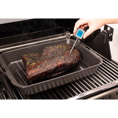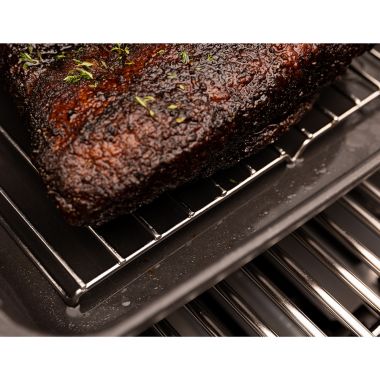 liegende Bratrost hebt das Fleisch vom Boden an, um seinen Saft oder andere aromatisierte Flüssigkeiten verdampfen zu lassen. Er ist aus