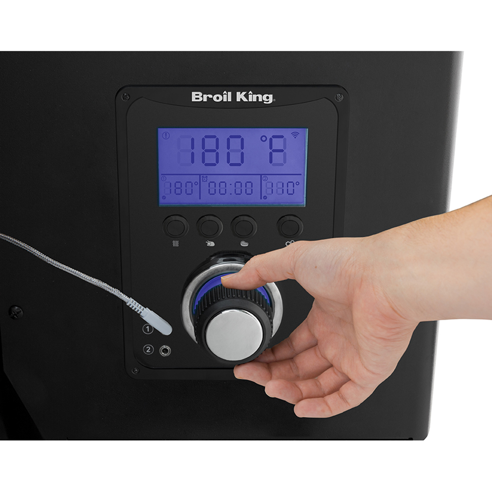 Über die digitale Bedienkonsole am Regal Pellet 400 nimmst du alle Einstellungen für den Grill vor. Mit einer Kurzwahltaste steuerst du durchs Programm Smoke, Roast und Grill. Ebenso kannst du präzise die Temperaturstufe von 82 - 316 °C genau und individuell einstellen. Für mehr Komfort koppelst du dein Smartphone mit dem Grill, per App, die für IOS und Android erhältlich ist, steuerst du dein Regal Pellet 400 bequem von überall aus.