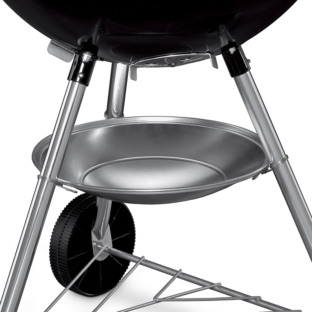 Das sehr gut verarbeitete emaillierte Stahl-Gehäuse ist langlebig und bietet einen gleichmässigen Wärmespeicher. Im Grill kann die direkte und die indirekte Grillmethode angewendet werden. Die Asche kann über die Auffangschale aufgefangen und entsorgt werden. Der Deckel des Bar-B-Kettle ist gegenüber dem Compact Kettle etwas höher damit auch Braten oder ganze Hähnchen problemlos im Grill Platz haben. Ausserdem kann die Hitze noch genauer reguliert werden dank der drei kleinen Lüftungsschieber am Unterteil des Kessels.