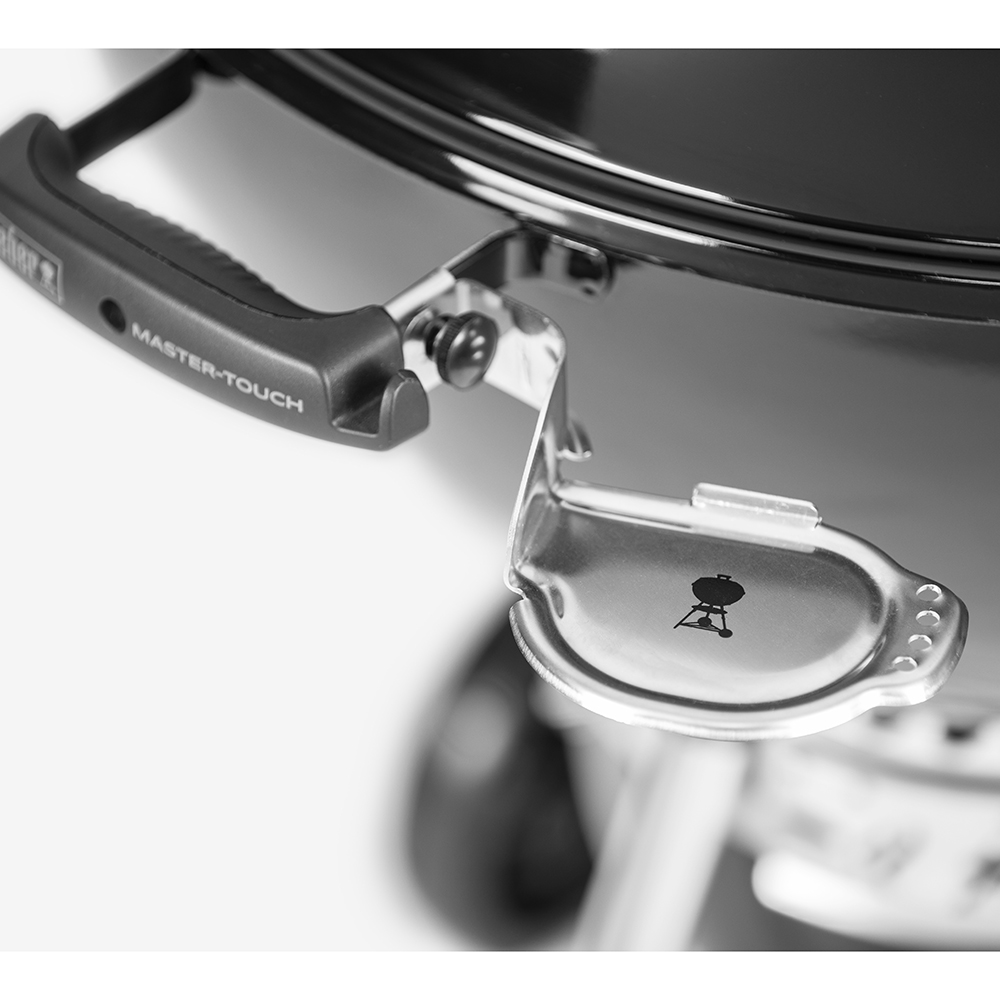 Der Grill hat eine Halterung für den iGrill-Fleischthermometer am Grill platziert. Ein weiteres, praktisches Element ist der Deckel mit Scharnier, um ein möglichst angenehmes Arbeiten am Grill zu ermöglichen. Zudem ist der Kugelgrill mit einem geschlossenen Aschetopf ausgestattet. Die Asche kann nach dem Grillieren einfach mit dem One-Touch-Reinigungssystem in den Aschetopf geschoben werden und dort bleiben, bis sie abgekühlt ist. Dank dem geschlossenen System kann keine Asche vom Wind weggeblasen werden. Auch das Nachfüllen von Holzkohle oder Briquettes kann bequem durch das Aufklappen des Grillrosts erledigt werden.