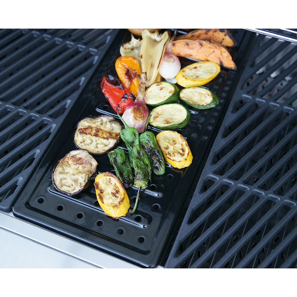 Für eine einfache und gesunde Zubereitung von Gemüse, Fisch oder Hamburger sorgt der Dualchef Gemüse-Rost. Die Porzellanemaillierung und spezielle Lochung des Rostes garantiert fettarmes Grillen und verhindert das Anhaften des Grillgutes. Für unkomplizierten Grillspass mit Gelinggarantie.