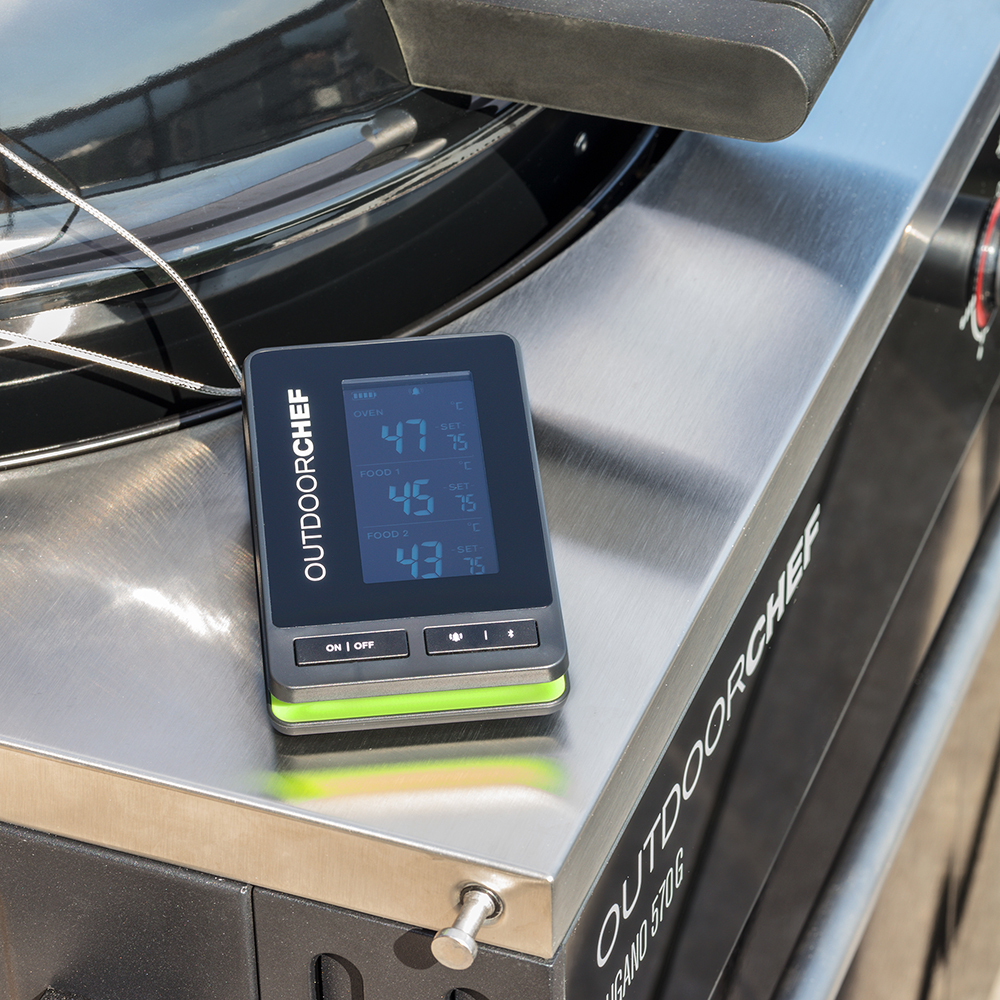 Das Bluetooth-Grillthermometer, das per App gesteuert wird, überträgt drei Kern- und Umlufttemperaturen direkt auf ihr Smartphone oder Tablet und sorgt so für hochklassige Garergebnisse. Zwei Messfühler informieren über die Temperatur im Grill und im Fleisch und senden die Werte über eine Distanz von ca. 100 Metern via Fast Connect Bluetooth-Technologie ans Smartphone oder Tablet. Der Gourmet Check Pro ist Regenwasserfest und die Messfühler können problemlos zum Reinigen in die Spülmaschine. Die App ist kostenlos im App Store sowie im Google Play Store erhältlich.
