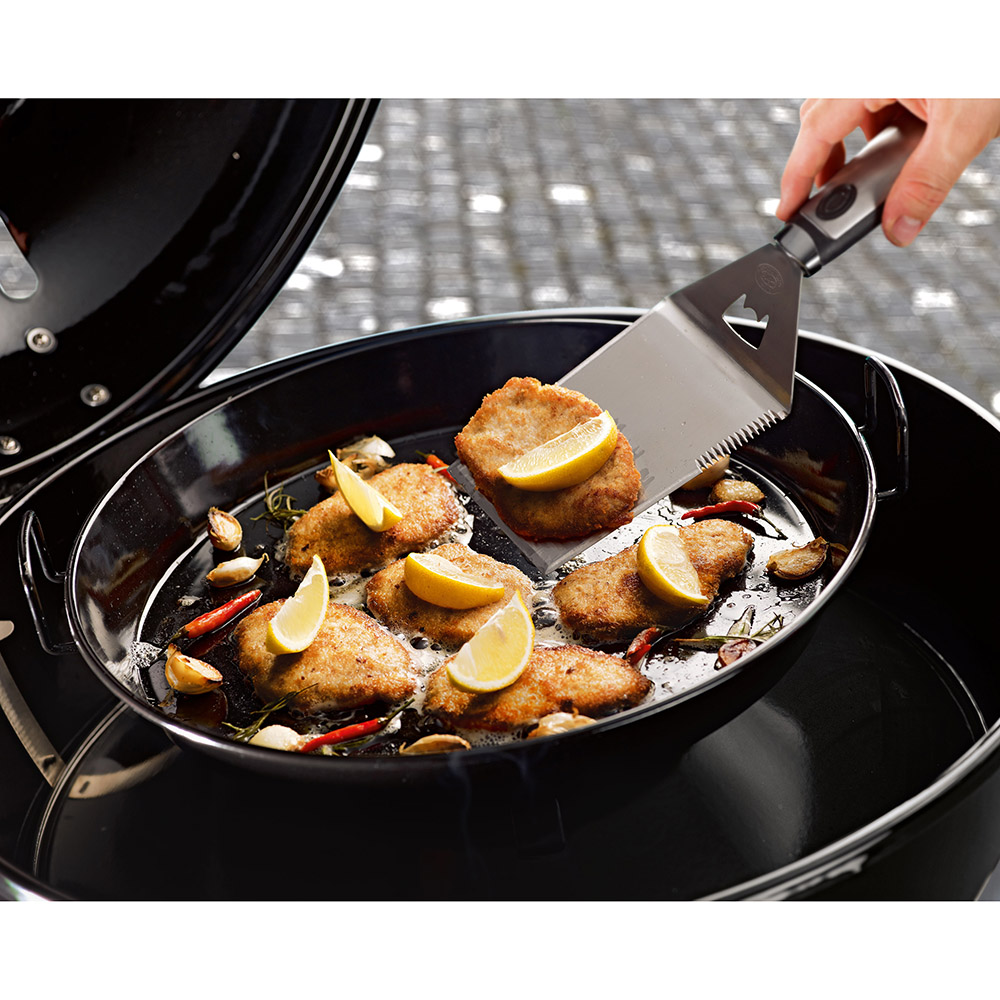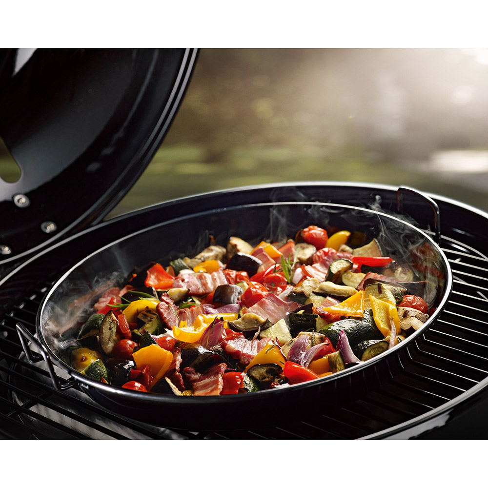 Das Outdoorchef Gourmet-Set 480/570 besteht aus einem Lochblech und einer Pfanne, kombiniert ist das Set ideal zum Dünsten. In der Gourmetpfanne kannst du eine leckere Paella oder ein Risotto direkt auf deinem Grill zubereiten. Die emaillierte Pfanne kann sowohl mit direkter als auch mit indirekter Hitze eingesetzte werden. Dank der emaillierten Oberfläche lässt sie sich besonders leicht reinigen. Mit dem Pizza-, Backblech sind leckere Pizzen vom Grill kein Problem! Die Löcher ermöglichen eine optimale Luftzirkulation, damit der Teig schön knusprig wird. Aber das Backblech ist nicht nur für feine Pizzen hervorragend geeignet, sondern auch für Flammkuchen, Fisch oder Gemüse. Auch andere Backwaren und kleines oder empfindliches Grillgut lassen sich auf dem Blech mühelos zubereiten. Sowie die Pfanne ist auch die Oberfläche des Backblechs emailliert, die Beschichtung sorgt dafür das, dass Grillgut nicht am Backblech haften bleibt.