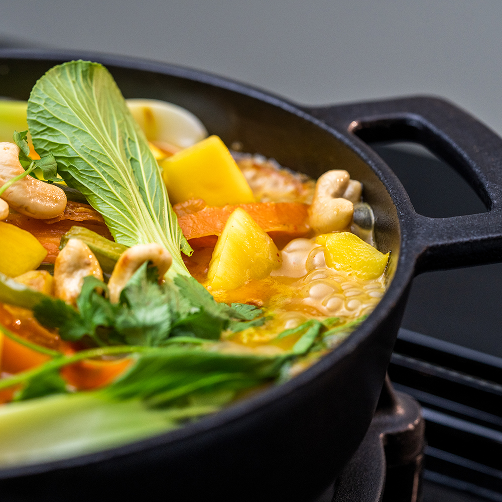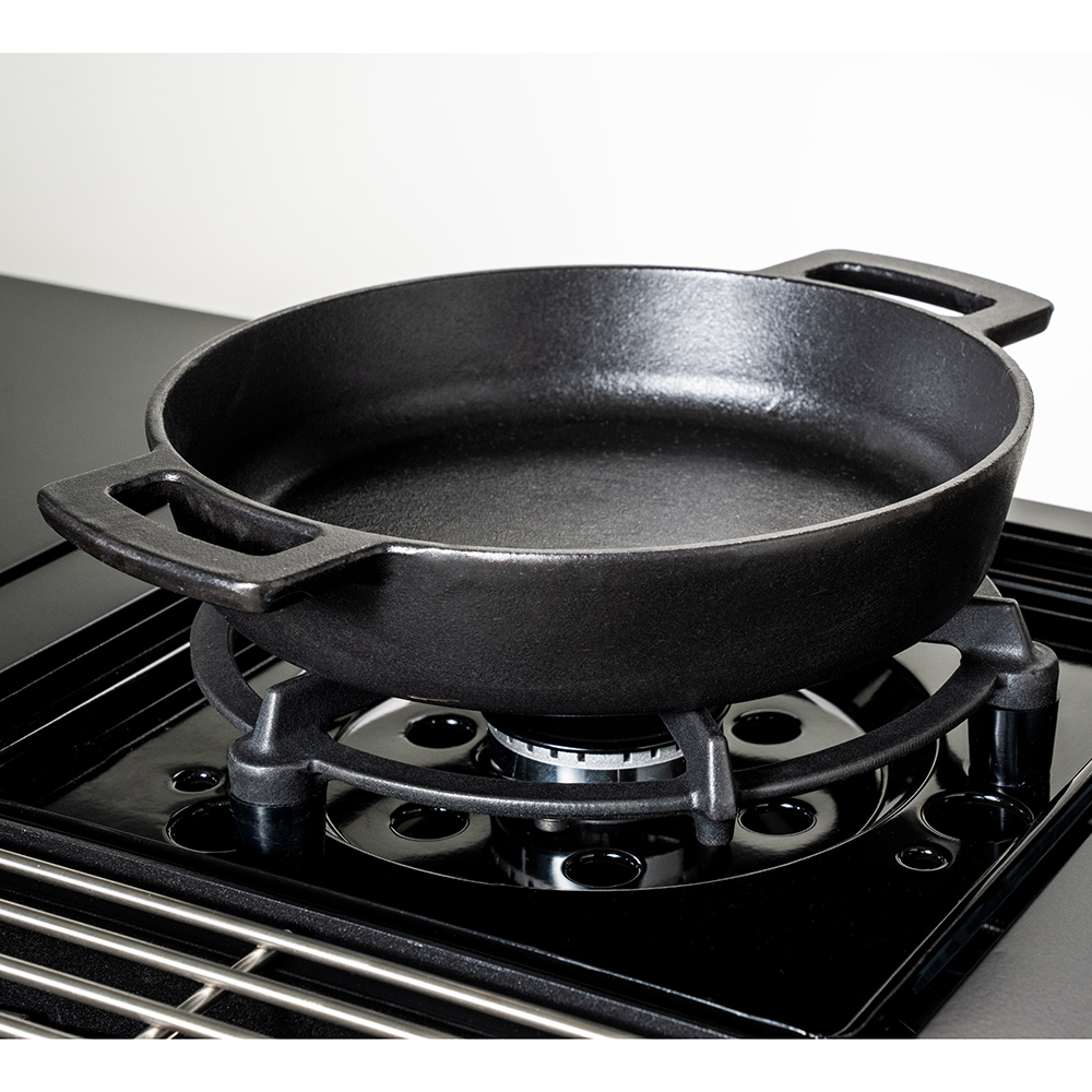 NEU! Die Gusseisen Pfanne von Outdoorchef ist perfekt für Schmorgerichte, scharfes Anbraten, Aufläufe und Desserts. Sie ist aus hochwertigem Porzellanemailliertem Gusseisen gefertigt. Gusseisen ist bekannt durch seine gleichmässige Wärmeverteilung und lässt sich sehr hoch erhitzen. Zudem hat Gusseisen auch die Eigenschaft, Wärme lange zu speichern, ohne zusätzliche Energie dafür aufzuwenden. Du kannst die Pfanne auf jeder Seitenkochstelle, direkt auf dem Grill oder im Backofen benützen. Wichtig ist, dass du deine Pfanne vor dem ersten Gebrauch einbrennst, damit sich eine Schutz-Patina bilden kann. Zudem empfehlen wir, die Pfanne mit der Restwärme des Grills zu trocknen und nach jedem Gebrauch einzuölen.