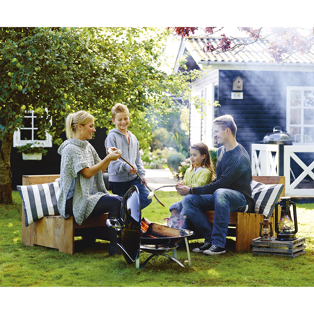 Nach einem gelungenen Barbecue, wenn alle satt sind, könnt ihr noch gemütlich im Garten oder Terrasse zusammensitzen. Feure einfach den Fireplace ein, sodass ihr das Knistern des Holzes geniessen könnt. Solange die Fireplace brennt wird das Feuer durch den Deckel geschützt, möchtest du es löschen, kannst du den Deckel direkt auf die Schale setzten und das Feuer erstickt.