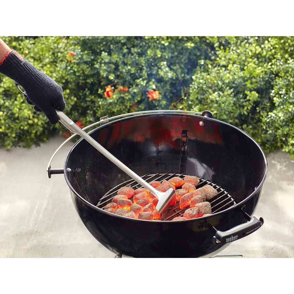 Eine sichere Möglichkeit, um die Position der heissen Holzkohle und / oder Räucherchips im Grill zu verändern. Dank des optimal abgewinkelten Kopfes und des langen Griffs ist man im Handumdrehen damit fertig. Ganz egal ob du die Holzkohle auf der ganzen Grillfläche, für direkte Hitze verteilst um ein Steak scharf anzubraten oder ob du die Holzkohle für ein Poulet in zwei unterschiedlichen Mengen aufteilst, mit dem Holzkohleschieber gelingt dir das ohne heisse Finger.
