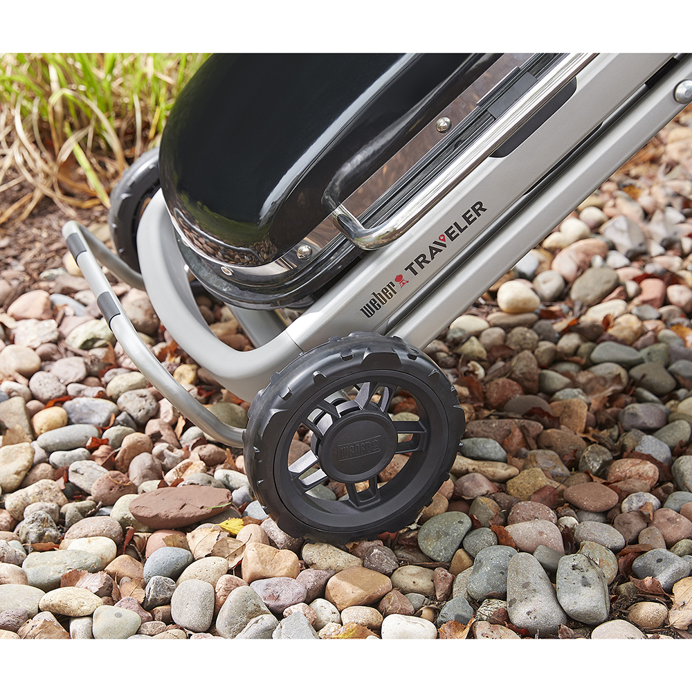 Das Highlight am neuen Traveler ist der klappbare Rollwagen, dieser wird mit einem einfachen Handgriff aufgestellt und fixiert. Die grossen Räder ermöglichen einen mühelosen Transport. Wenn der Grill nicht mehr gebraucht wird, kann man ihn im Handumdrehen mit nur einem einzigen Handgriff wieder zusammenklappen und die automatische Deckel- sowie Wagenverriegelung helfen beim sicheren Transport.