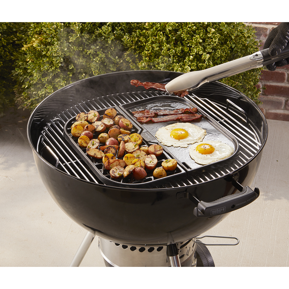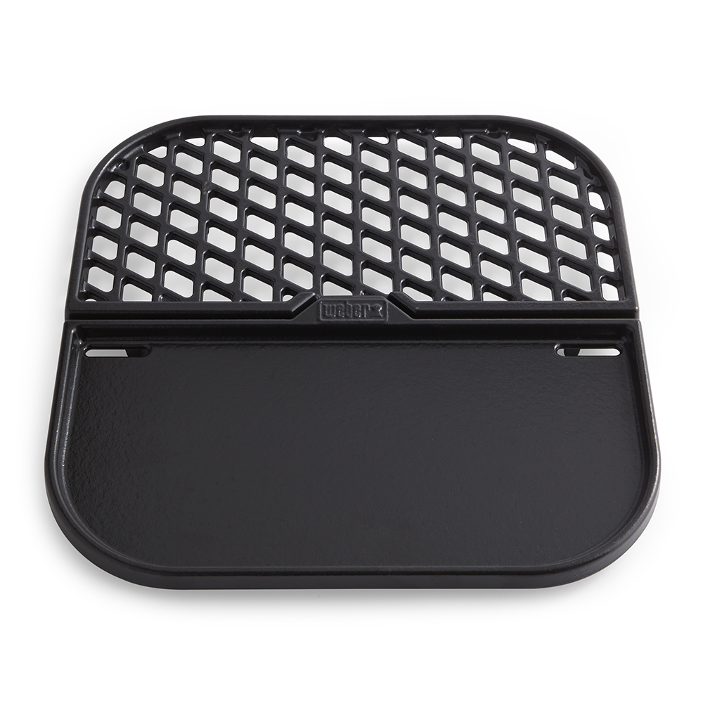 Fällt dir die Entscheidung schwer- entweder Grillieren oder Anbraten? Mach einfach beides auf einmal mit der neuen 2-in-1 Sear Grate und Grillplatte von Weber. Mit der Kombination aus Gusseisenrost und Grillplatte sparts du nicht nur Zeit beim Grillieren oder Anbraten, du kannst auch verschiedene Gerichte auf einmal zubereiten. Omeletten und knusprig angebratene Speckstreifen für ein leckeres Frühstück oder Steaks und zugleich Gemüse für Fajitas, mit der 2-in-1 Sear Grate und Grillplatte ist dies alles mühelos möglich. Die porzellanemaillierte Oberfläche ist einfach zu reinigen und die stapelbaren Teile sparen Platz bei der Aufbewahrung.