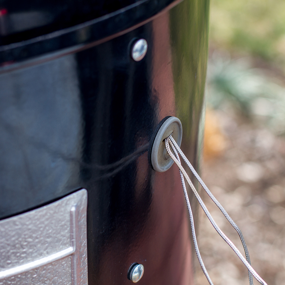 - Große Öffnung: zum Nachlegen von Briketts und Räucherchips