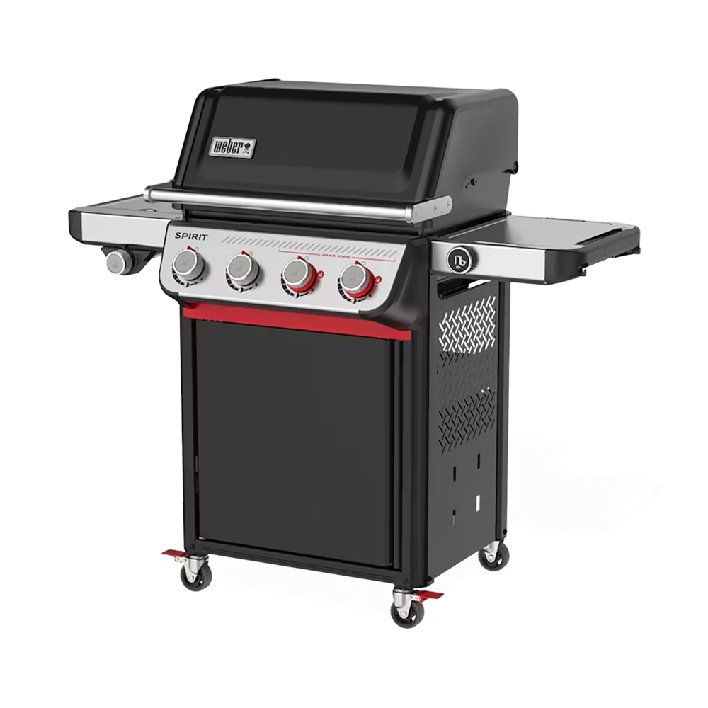 Der Weber Gasgrill Spirit EP-435 LP ist mit einer Snap-Jet-Zündung ausgestattet. So kannst Du jeden einzelnen Brenner separat zünden. Der Temperaturbereich kann in einem sehr hohen Spektrum präzise gesteuert werden. Die integrierte Sear Zone mit zwei Boost-Brennern, die bis zu 40 % mehr Leistung in der Sear Zone freisetzen, sorgt für perfekte Grillmuster beim scharfen Anbraten. Die Seitentische aus Edelstahl sind mit je 2 Besteckhaken ausgestattet. Der Grill ist mit den Weber Works Seitenschienen ausrüstet. Mit einer Schnappbefestigung für Snap-On-Zubehör (separat erhältlich) kann der Platz optimal genutzt werden und alles was Du zum Grillieren benötigst, ideal platziert werden.