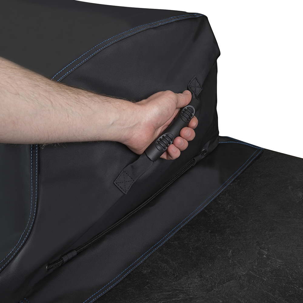 Die witterungsbeständige PVC Abdeckhaube schützt deinen Einbaugrill effektiv vor Regen, Schnee, Sonneneinstrahlung oder sonstige Verschmutzung. Die Premium Schutzhülle ist passgenau für deinen Broil King Built-In zugeschnitten und leitet dadurch das Wasser vom Grill weg. Zudem ist die Abdeckhaube mit Schnüren zum Festziehen und zusätzlichen Magneten ausgestattet, damit auch bei stärkerem Wind alles an Ort und Stelle bleibt. Mithilfe der zwei stabilen Gummigriffe ist das An- und Abziehen der Abdeckhaube ein Kinderspiel. Der stilvolle Broil King® Stick auf der Front rundet das ganze optisch noch ab.