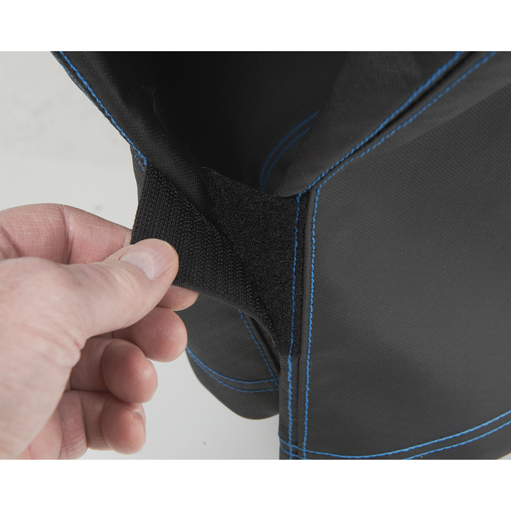 Abdeckhaube ein Kinderspiel. Dank der seitlichen Klettverschlüssen lässt sich die Haube